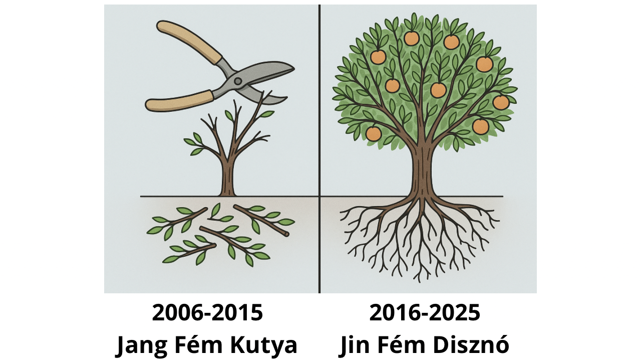 mély átalakuláshoz vezet. Ez az időszak arról szól, hogy egy mélyebb önazonosság ébred fel benne. A „külső” sikerek után (Social Chain, The Diary of a CEO, könyvek, elismerés) most a belső forrás felé fordul. Ezt gyakran erős élethelyzeti sokkok, irányváltások, spirituális felismerések kísérik, mintha egy új, mélyebb igazság hívná őt. Ez a 10 év széttöri az ego biztonsági falait, hogy a valódi hit és bátorság megszülessen.