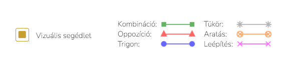 Személyes horoszkóp struktúra és rokoni vonatkozások megjelenítése színes ábárban:
